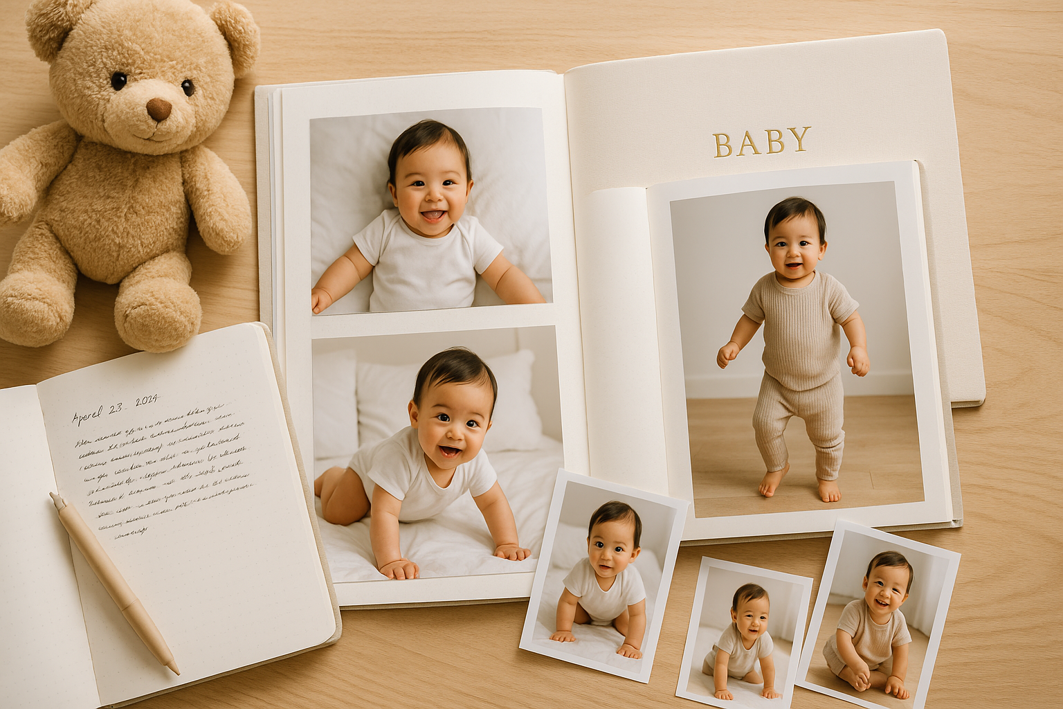 毎月作らなくても、1年の総まとめだけでも子どもの成長が分かりやすい。無理に全部アルバムにしなくてもOKです。