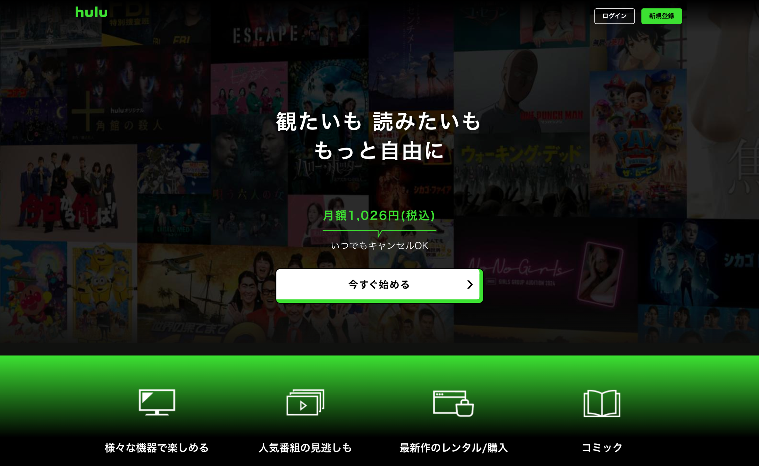 日常の中に、いつでもどこでも楽しめる最高のエンターテインメントを。「hulu(フールー)」は、国内外の人気映画、ドラマ、アニメ、バラエティなど、多彩なジャンルの作品を月額定額で見放題(※一部課金作品あり)で提供するオンライン動画配信サービスです。特に日本国内のテレビ番組との連携が強く、放送中の人気番組の見逃し配信も充実しているため、多くのユーザーに選ばれています。